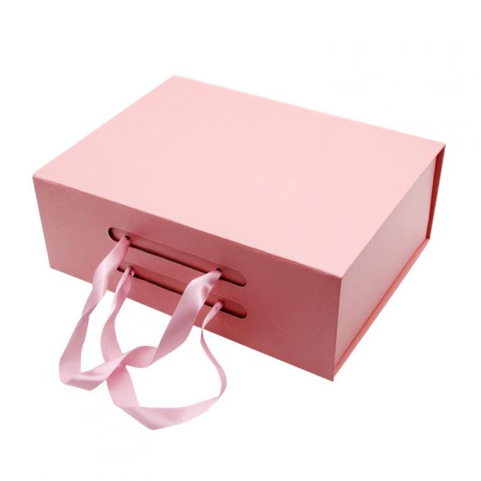 Caja de papel plana dura de papel modificada para requisitos particulares de lujo de Flip Top String Ribbon Handle de las cajas de regalo de la cartulina de la cinta plegable de la caja del regalo